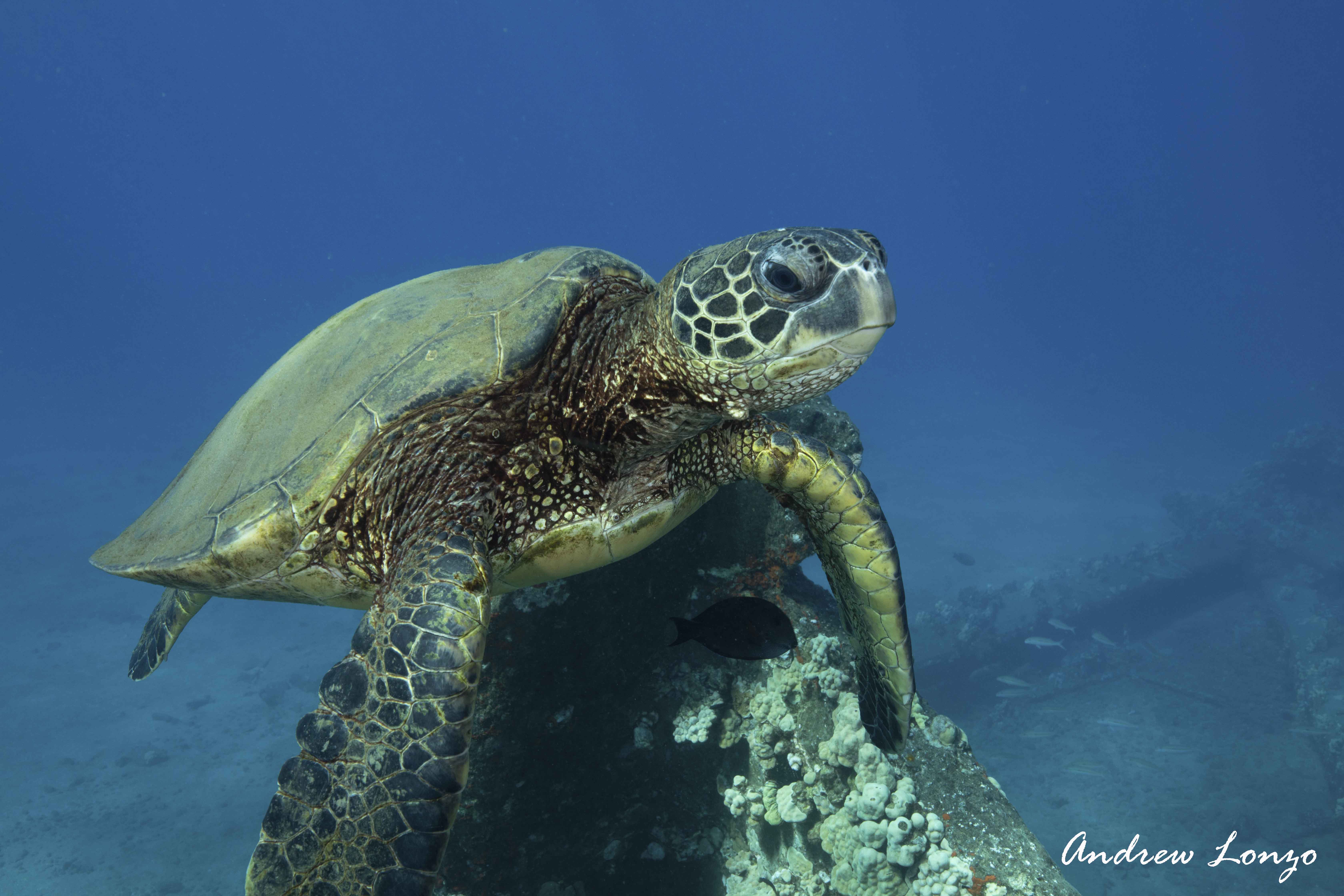 Part of our Beauty Discovered series. Turtle waiting at the cleaning station at Mala Wharf in Maui Hawaii. Shot with Canon 5D Mark IV in a Nauticam Houseing, with Kraken Mini Flare video lights, and Sea & Sea YSD2 strobes. Take our photography class to learn how to capture breathtaking memories of your own discoveries.
